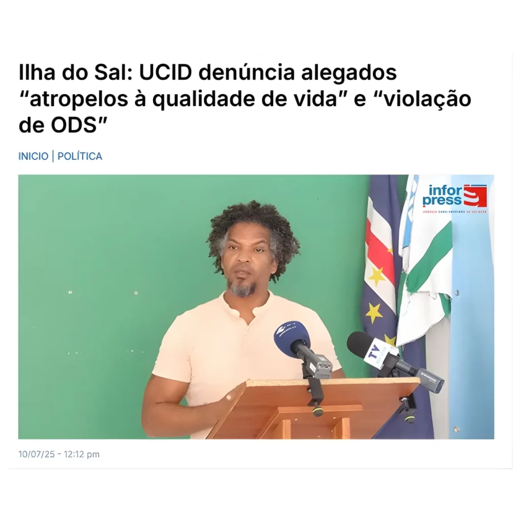 Espargos, 10 Jul (Inforpress) – O vice-presidente da União Cabo-verdiana Independente e Democrática (UCID), Aldirley Gomes, denunciou hoje, na ilha do Sal, uma série de alegados “atropelos à qualidade de vida e ao bem-estar dos salenses” e violação de ODS.